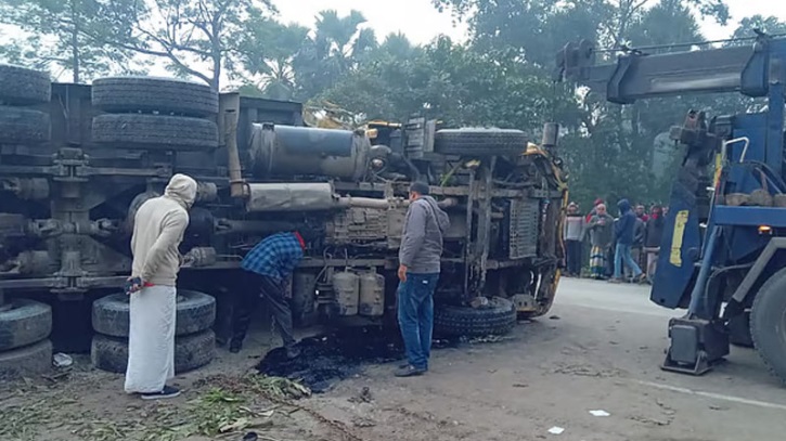 বছরের প্রথম সকালে পুঠিয়ায় বালুবাহী ট্রাক উল্টে প্রাণহানি ৪