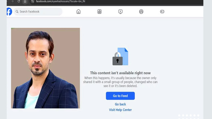 সাংবাদিক ও অনলাইন অ্যাক্টিভিস্ট ইলিয়াস হোসেনের ফেসবুক পেজ মেটা কর্তৃপক্ষ সরিয়ে দিয়েছে।