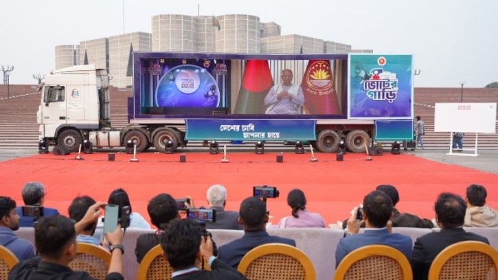 প্রফেসর ইউনূস বলেন, বাংলাদেশ একটি গুরুত্বপূর্ণ সময় অতিক্রম করছে। সামনে রয়েছে জাতীয় সংসদ নির্বাচন এবং জুলাই জাতীয় সনদ বাস্তবায়নের ওপর গণভোট। এই লক্ষ্যকে সামনে রেখে যাত্রা শুরু করেছে ১০টি ভোটের গাড়ি—সুপার ক্যারাভান। এসব গাড়ি দেশের ৬৪টি জেলা ও ৩০০টি উপজেলায় ঘুরে বেড়াবে। তারা মানুষের দুয়ারে দুয়ারে গিয়ে নির্বাচন ও গণভোট সম্পর্কে তথ্য পৌঁছে দেবে, ভোটাধিকার সম্পর্কে সচেতনতা তৈরি করবে এবং গণতন্ত্রের বার্তা ছড়িয়ে দেবে।