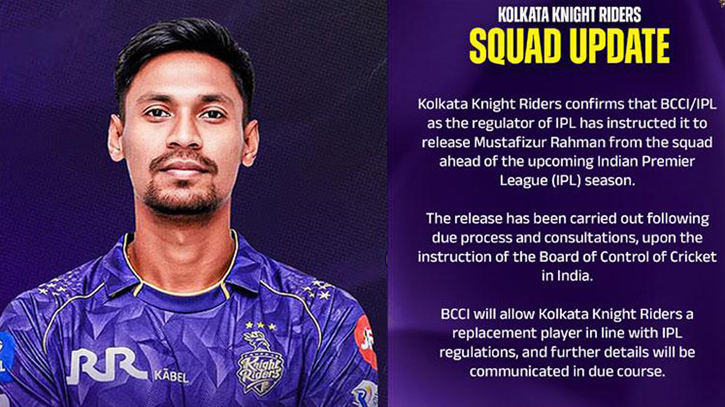 উল্লেখ্য, এবারের আইপিএল নিলামে ৯ কোটি ২০ লাখ রুপিতে মোস্তাফিজুর রহমানকে দলে ভেড়ায় কলকাতা নাইট রাইডার্স। তবে বাংলাদেশে হিন্দু ধর্মাবলম্বীদের ওপর নিপীড়নের অভিযোগ তুলে মোস্তাফিজকে আইপিএল থেকে বাদ দেওয়ার দাবিতে ভারতের কয়েকটি কট্টর হিন্দুত্ববাদী সংগঠন বিক্ষোভ করে আসছিল। এরই প্রেক্ষিতে ভারতীয় ক্রিকেট কন্ট্রোল বোর্ড (বিসিসিআই) মোস্তাফিজকে স্কোয়াড থেকে বাদ দেওয়ার নির্দেশ দেয়। বিসিসিআইয়ের সেই নির্দেশনা অনুসরণ করে কেকেআর কর্তৃপক্ষ টাইগার এই পেসারকে ছেড়ে দেয়।