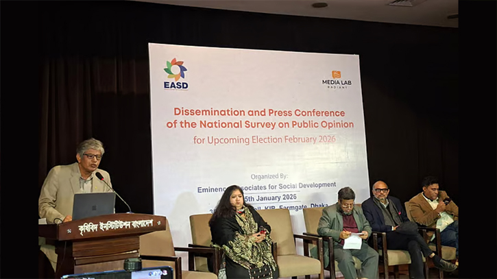 সোমবার (৫ জানুয়ারি) বিকেলে রাজধানীর ফার্মগেটে কেআইবি মিলনায়তনে জরিপের ফলাফল তুলে ধরেন ইএএসডির প্রধান নির্বাহী কর্মকর্তা শামীম হায়দার তালুকদার।