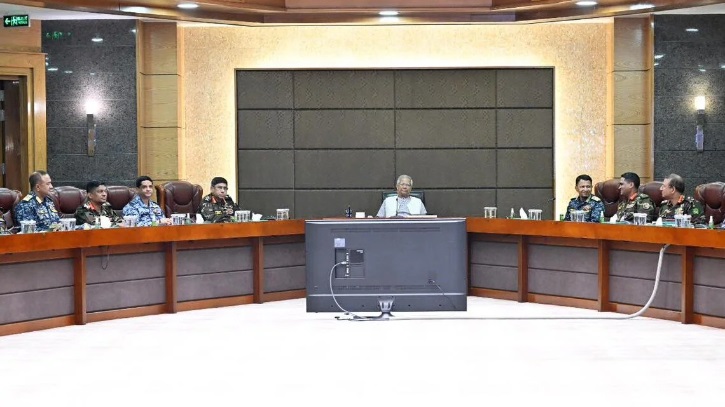 সভার শুরুতে প্রধান উপদেষ্টা দেশের বিভিন্ন প্রয়োজনে সশস্ত্র বাহিনীর গৌরবোজ্জ্বল ও দায়িত্বশীল ভূমিকার কথা উল্লেখ করেন। তিনি দীর্ঘ সময় ধরে ধৈর্য ও পেশাদারিত্বের সঙ্গে দেশের আইনশৃঙ্খলা বজায় রাখায় সশস্ত্র বাহিনীর অবদানের জন্য আন্তরিক ধন্যবাদ ও কৃতজ্ঞতা প্রকাশ করেন।