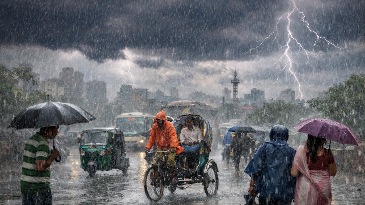 রাজধানী ঢাকার আবহাওয়া প্রসঙ্গে জানানো হয়েছে, আজ দুপুরের মধ্যেই ঢাকা ও এর আশপাশের এলাকায় বৃষ্টি বা বজ্রসহ বৃষ্টির প্রবল সম্ভাবনা রয়েছে। সকাল ৭টা থেকে পরবর্তী ৬ ঘণ্টার পূর্বাভাসে বলা হয়েছে, ঢাকার আকাশ আংশিক মেঘলা থেকে অস্থায়ীভাবে মেঘাচ্ছন্ন থাকতে পারে। এ সময় দক্ষিণ বা দক্ষিণ-পশ্চিম দিক থেকে ঘণ্টায় ১০-১৫ কিলোমিটার বেগে বাতাস প্রবাহিত হলেও ঝোড়ো হাওয়ার সময় এর গতিবেগ অস্থায়ীভাবে ৪০ থেকে ৫০ কিলোমিটার পর্যন্ত বৃদ্ধি পেতে পারে। গতকাল বুধবার রাজধানীর সর্বোচ্চ তাপমাত্রা ছিল ৩৫.২ ডিগ্রি সেলসিয়াস, যা আজ বৃষ্টির প্রভাবে ১ থেকে ২ ডিগ্রি সেলসিয়াস পর্যন্ত হ্রাস পেতে পারে।