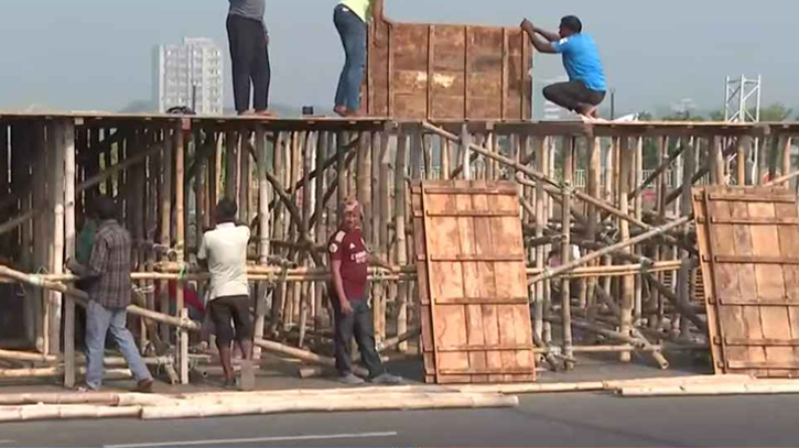 রবিবার (২১ ডিসেম্বর) দুপুর থেকে বিশ্বরোড থেকে পূর্বাচলমুখী ৩০০ ফিট সড়কের একটি অংশে মঞ্চ তৈরির কাজ শুরু হয়।